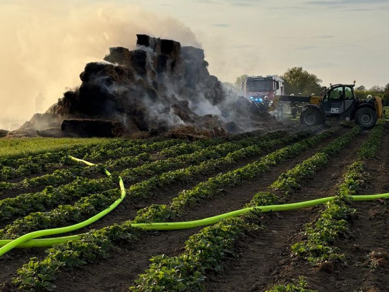 Am 18. April 2026 wurden wir um 17:48 Uhr zur Unterstützung mehrerer Feuerwehren zu einem bereits ausgedehnten Strohbrand auf einem Erdbeerfeld nachalarmiert. Aus...