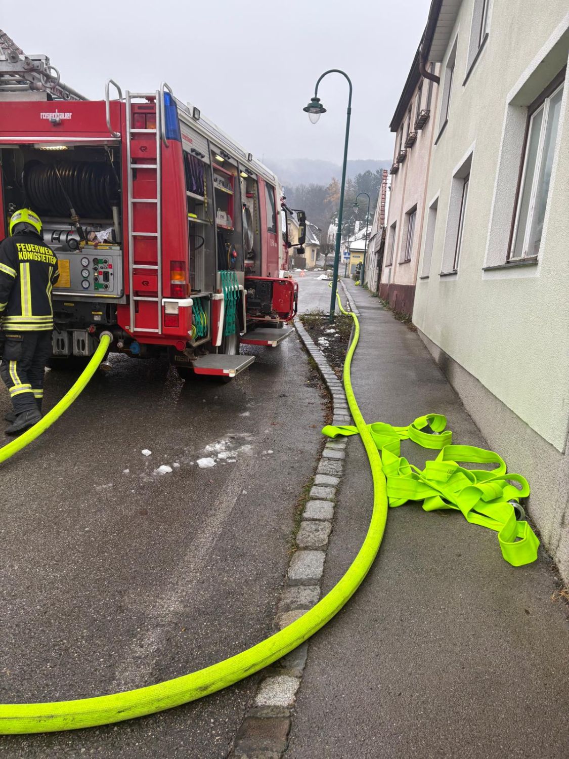 Die Bewohnerin wurde aus dem Wohnraum im Obergeschoss gerettet und an das Rote Kreuz übergeben. Die Brandbekämpfung erfolgte mittels HD-Rohr unter Atemschutz. Insgesamt waren drei Trupps im Einsatz (der erste Trupp übernahm auch den dritten Einsatzabschnitt).