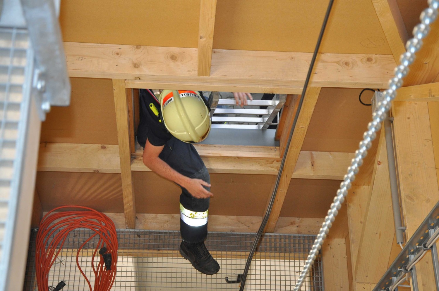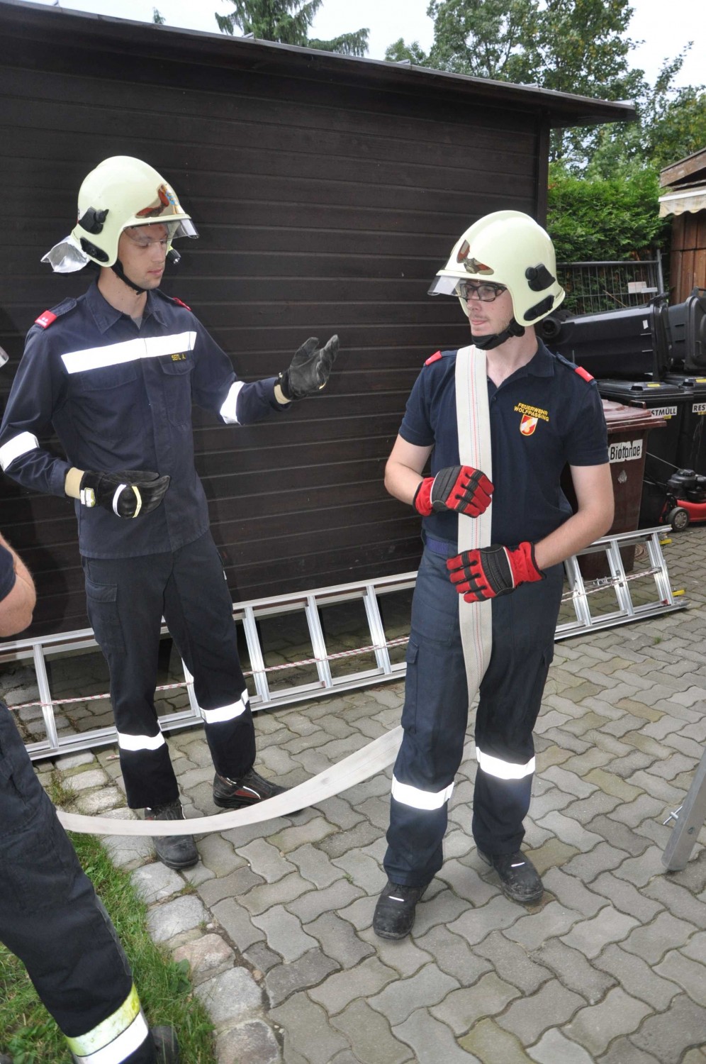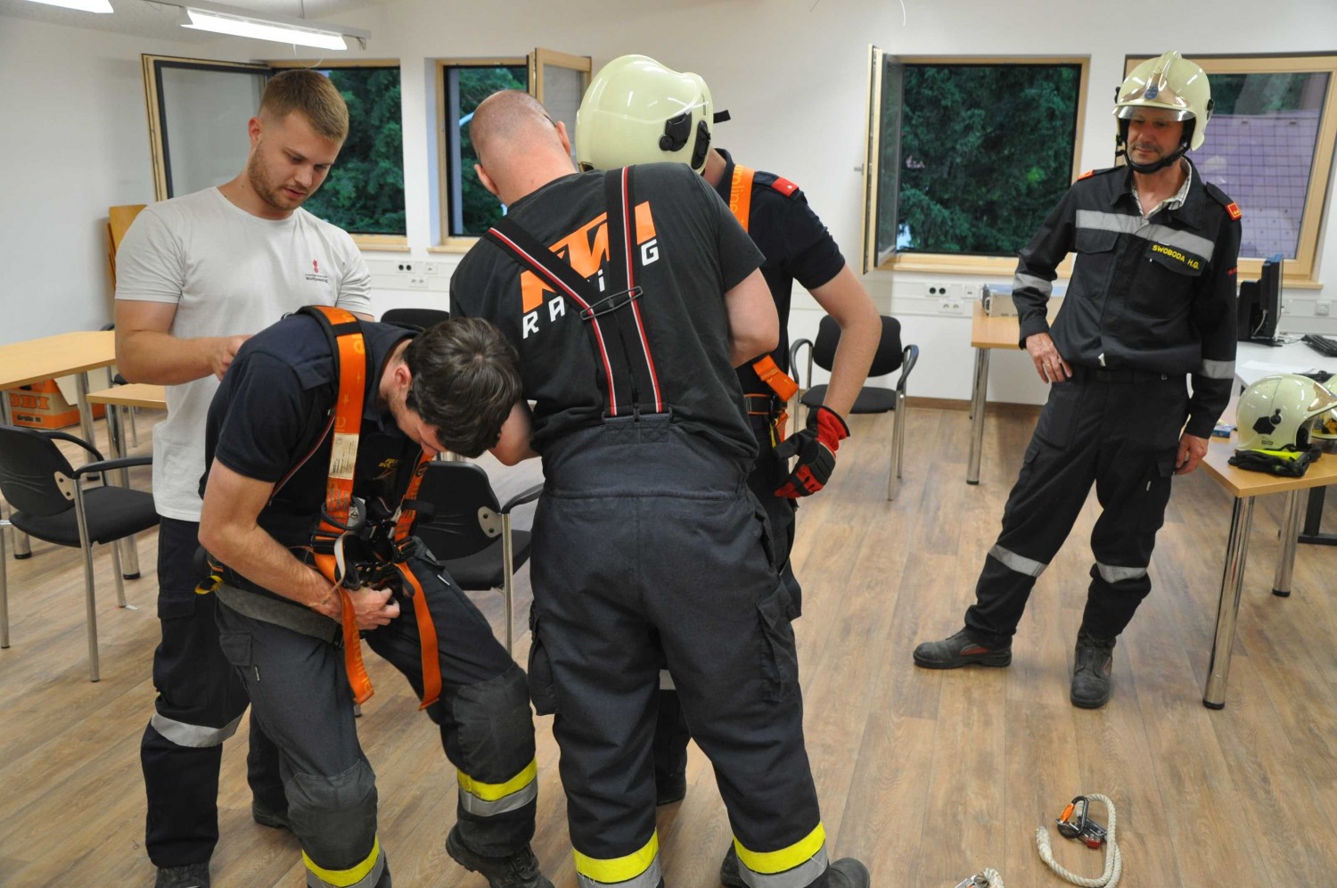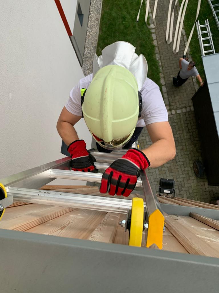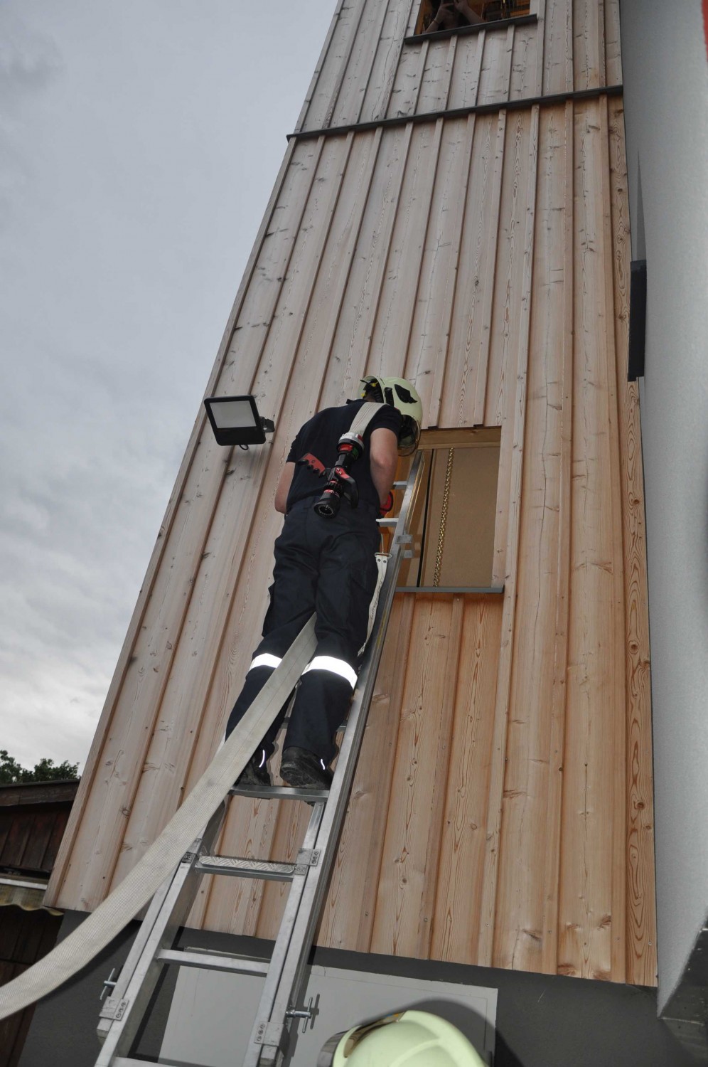 Unser neuer Schlauchturm eignet sich hervorragend für Übungen wir zum Beispiel Anleitern. Am Montag haben wir das richtige Einsteigen über Leitern geübt. Weiters haben wir verschieden Sicherungssysteme getestet und das richtige Vorgehen am Dach geübt.