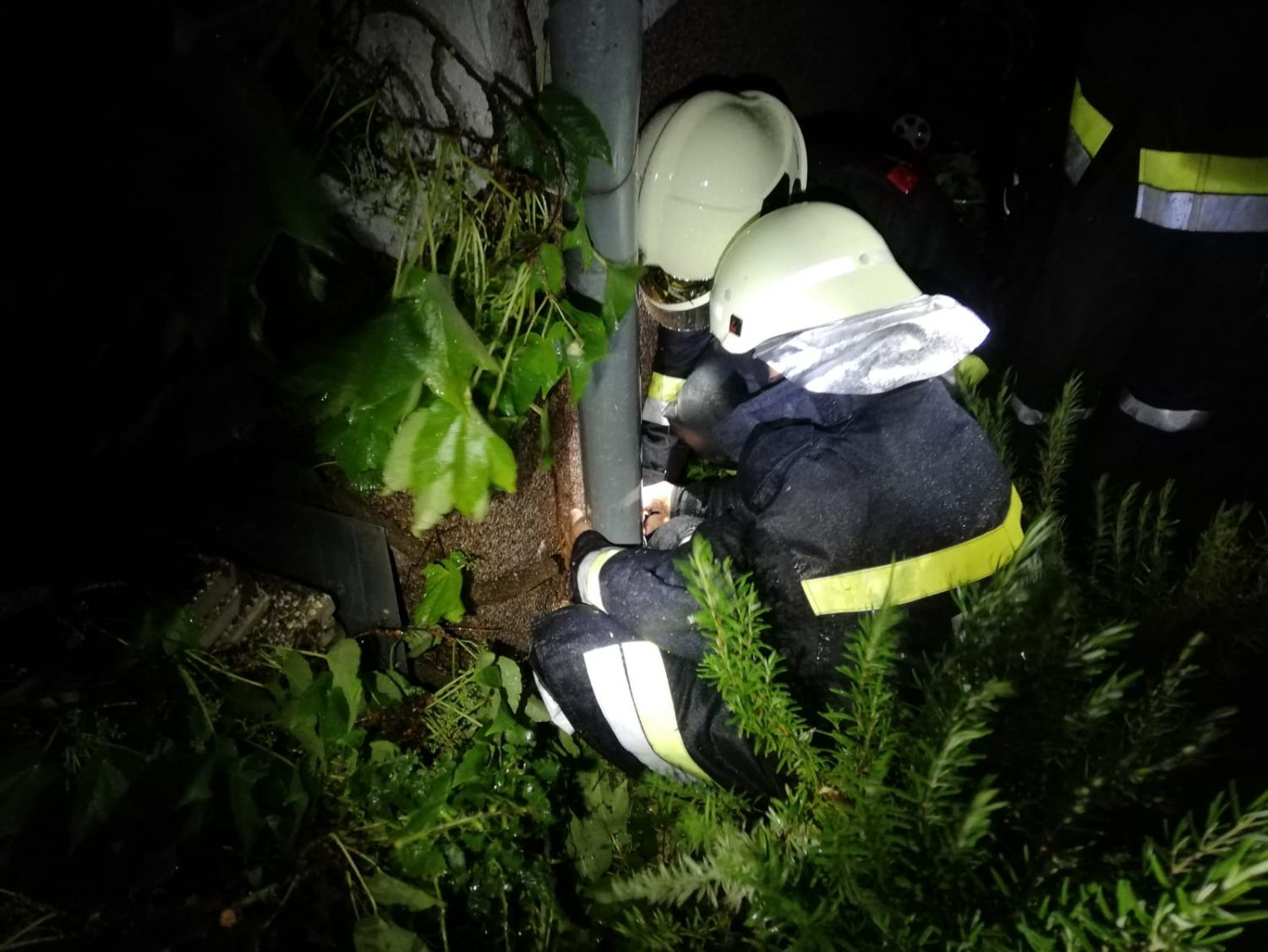 Ein defektes Dachrinnenfallrohr war der Verursacher, wir konnten den Schaden provisorisch reparieren und den Wasserschaden im Keller geringhalten.