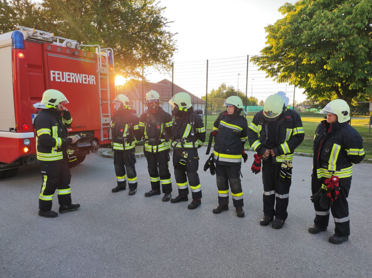 Zuerst gab es eine teoretische Einschulüng über den Richtigen Umgang mit chemischen Stoffen, danach wurde in der Sportgasse ein Szenario geübt: Beim Eintreffen am Übungsort, hat die Erkundung ergeben, dass sich eine Person beim Hantieren mit einem chemischen flüssigen Stoff verletzt hat. Die Unfallstelle wurde weitläufig abgesperrt und schnell ein Atemschutztrupp ausgerüstet um eine Bergung durchzuführen.