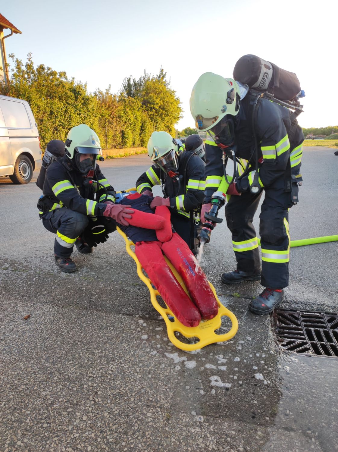 Danach wurde die verunfallte Person noch fachmännisch dekontaminiert.