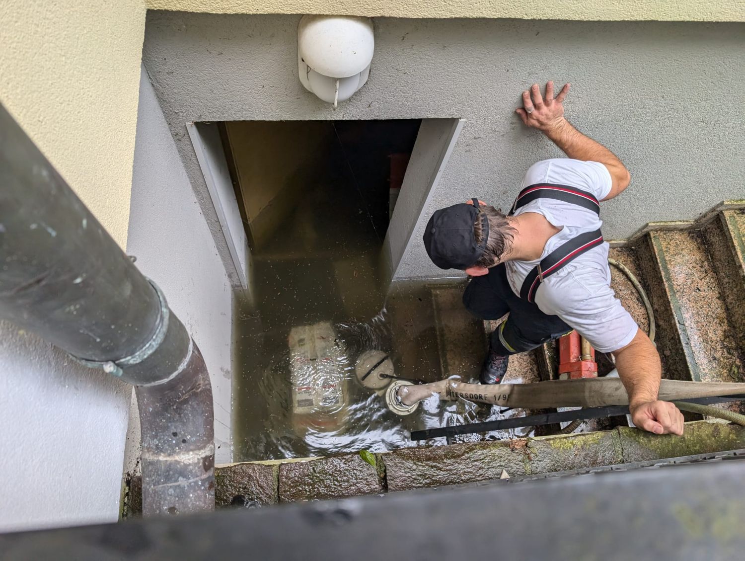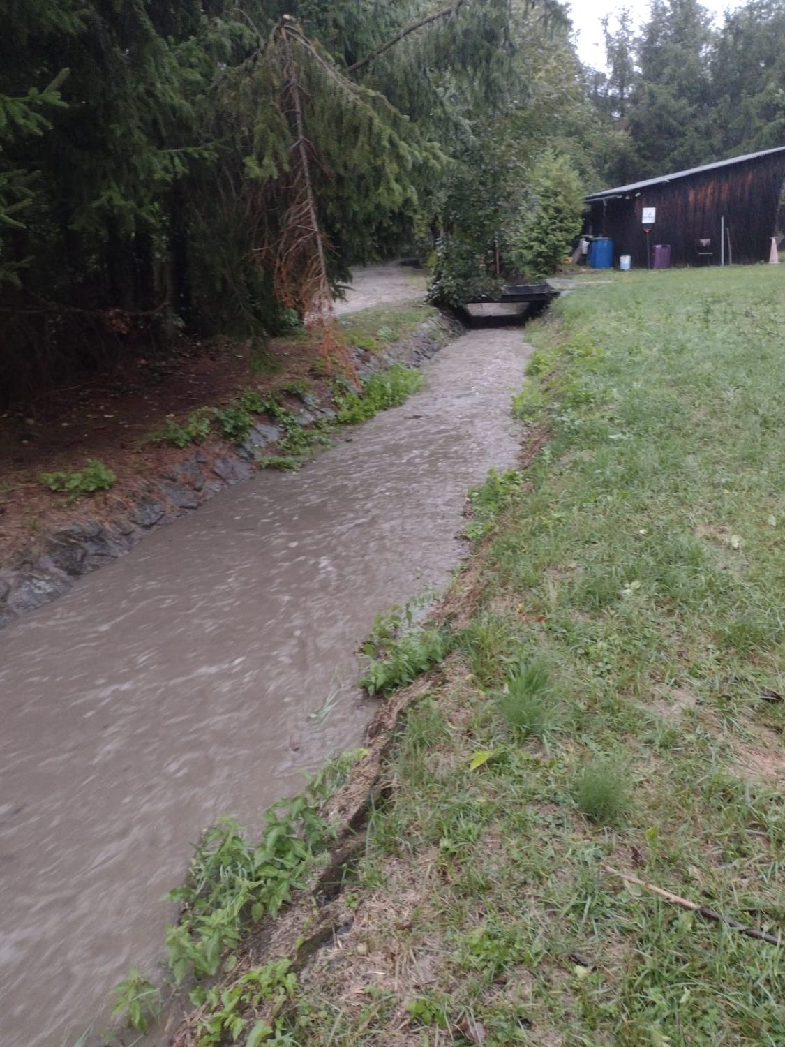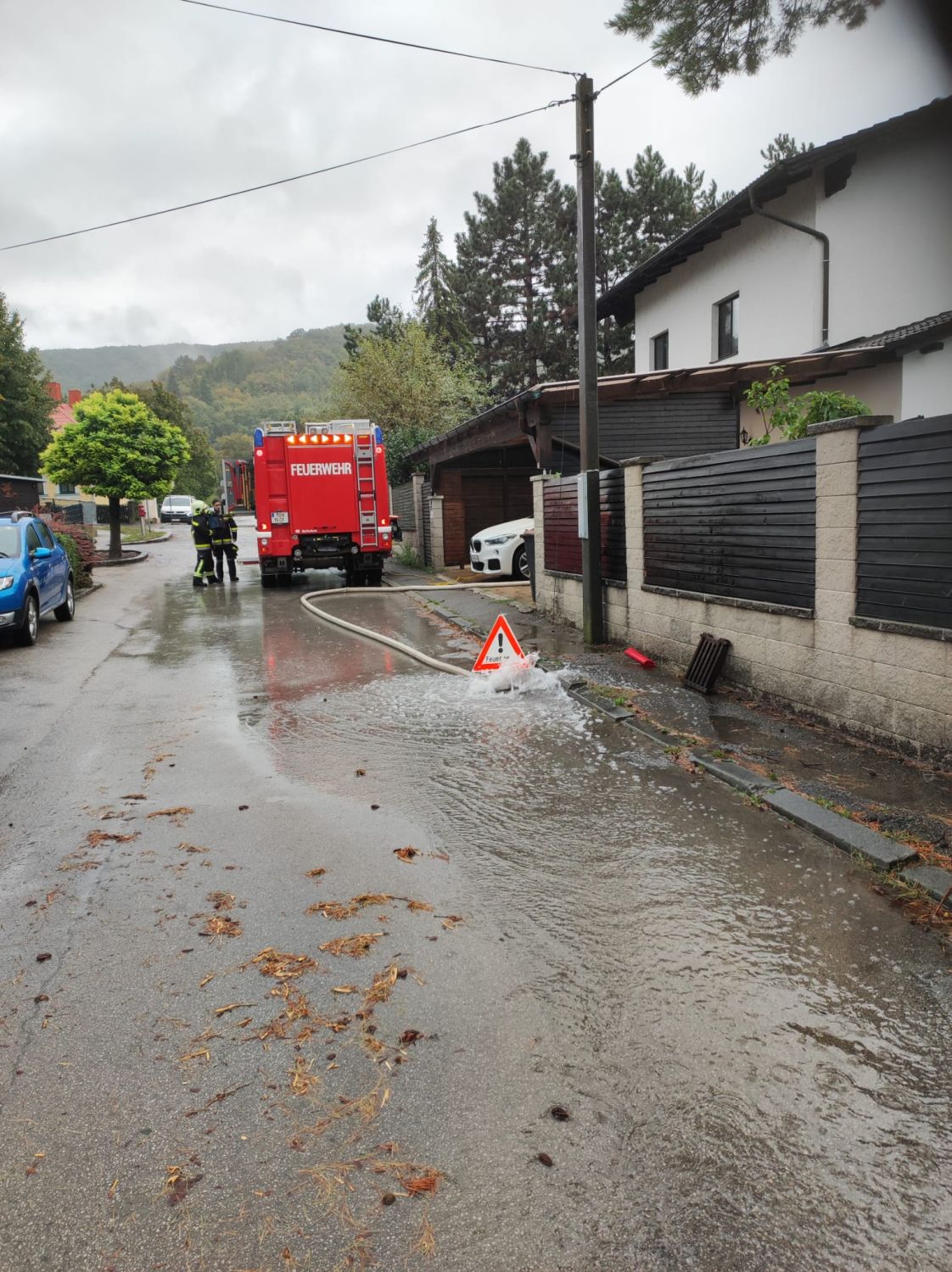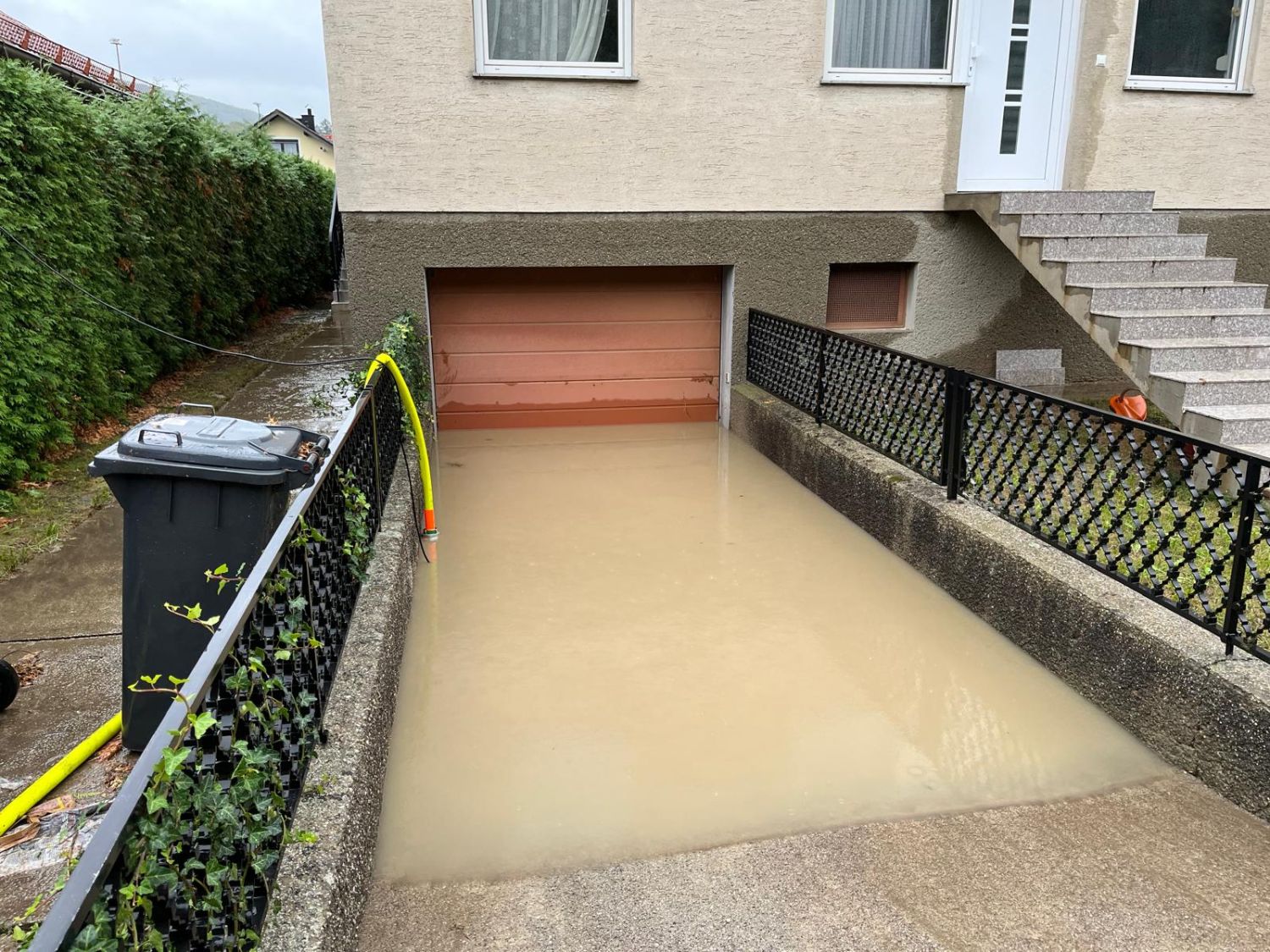 Am Freitag wurden alle Gräben im Ortsgebiet mehrfach kontrolliert, am Samstag wurde der Graben im Bereich Bergweg von Ablagerungen geräumt und dadurch die Durchflussgeschwindigkeit erhöht. Gleichzeitig wurde eine Gruppe samt Löschfahrzeug zur Unterstützung nach Königstetten entsendet. Dort drohte der Hauptgraben aus den Ufern zu treten und die Siedlung im Bereich Wipfingerstraße zu überfluten. Unsere Gruppe war mit Auspumparbeiten in der Tiefgarage beschäftigt.