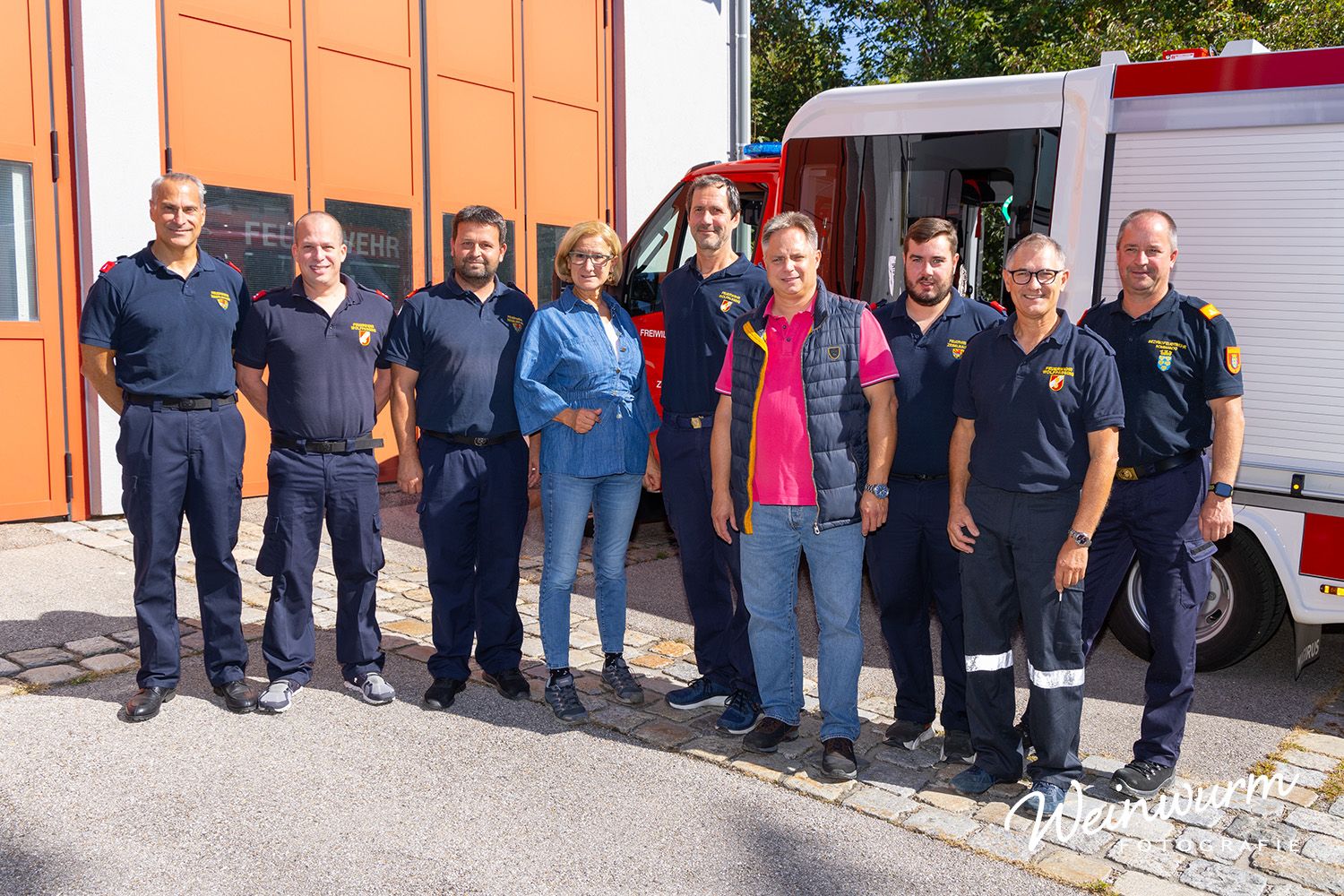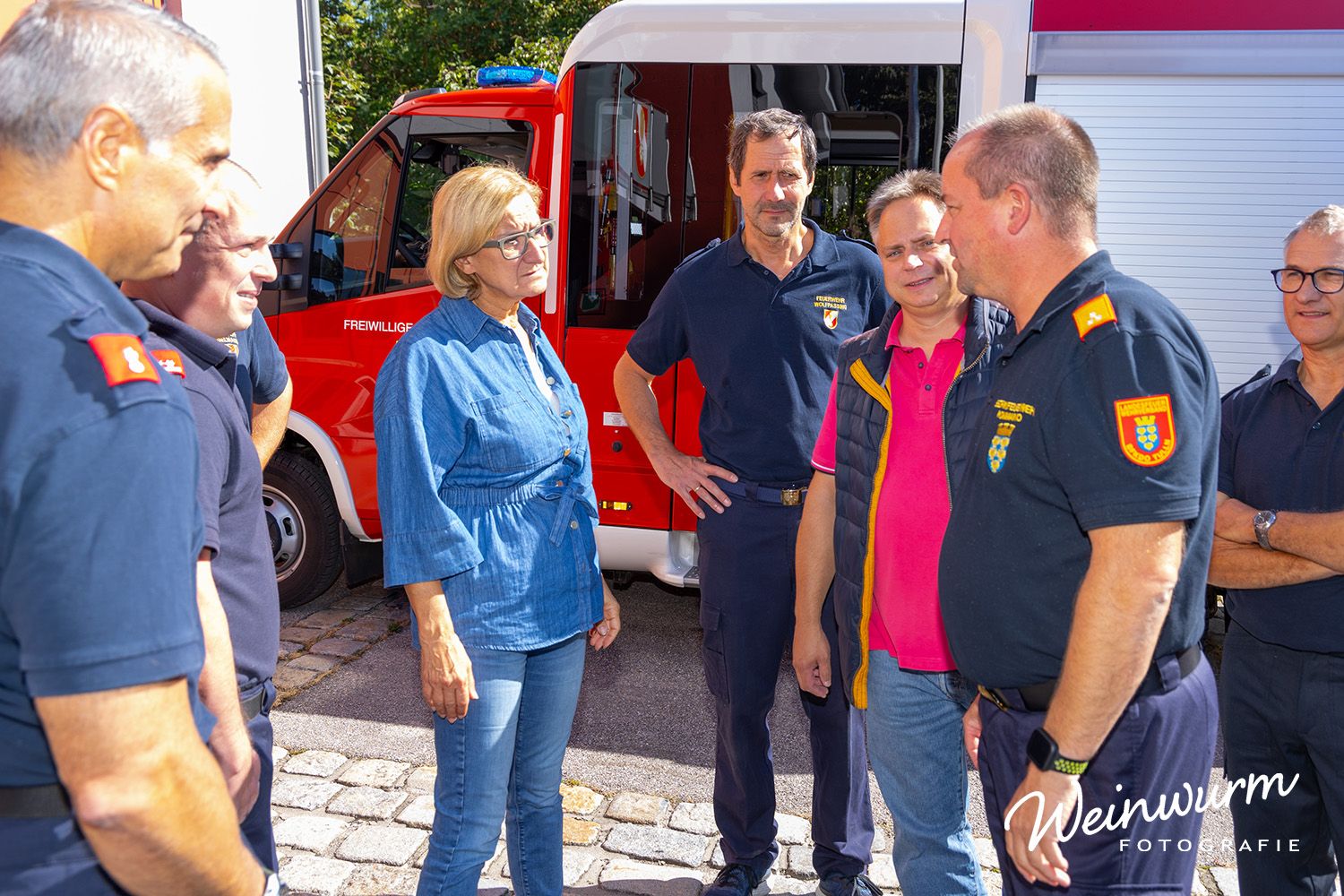 Nach der Hochwasserkatastrophe trafen wir uns mit Frau Landeshauptfrau Mikl-Leitner zu einer Besprechung um Verbesserungen zu diskutieren und gesammelte Erfahrungen auszutauschen im Feuerwehrhaus in Wolfpassing, mit dabei Bezirkskommandant Christian Burkhart, Bürgermeister Martin Pircher und die FF Zeiselmauer.