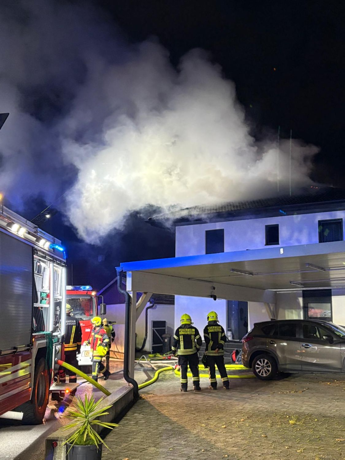 Am 9. Oktober wurden wir zu einem Wohnhausbrand in Muckendorf alarmiert. Das Feuer brach im angebauten Wintergarten aus und breitete sich über die Hausmauer auf das Obergeschoss sowie den Dachstuhl aus.