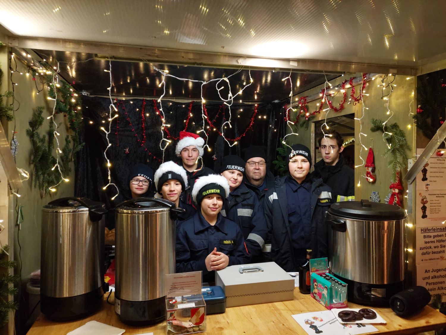 Auch heuer war unsere Feuerwehrjugend wieder beim Weihnachtsdorf vertreten. In ihrem Stand verkauften sie Toasts und Würstel; außerdem gab es Kinderpunsch sowie Punsch für Erwachsene.